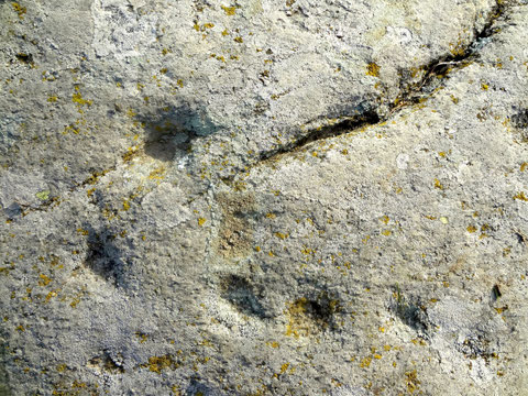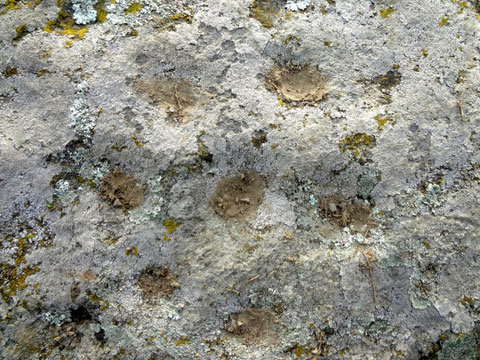 Vertiefungen im Granit, die offensichtlich in einer ganz bewusst gesetzten Ordnung angebracht wurden,